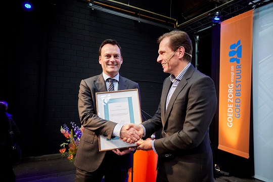 De uitreiking van het certificaat vond plaats tijdens het congres ‘Goede zorg vraagt om goed bestuur’. Dit congres werd georganiseerd door het ministerie van VWS voor bestuurders en toezichthouders uit de gezondheidszorg. Minister De Jonge was op het laatste moment onverwacht verhinderd voor de uitreiking vanwege een lange file.
